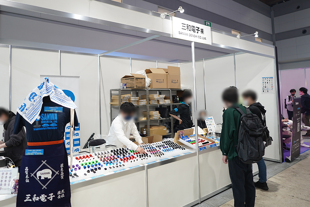 アーケードゲーム好きなら知らない人はいない有名メーカーが三和電子。高品質なボタンなどを製造しているメーカーで、多くのゲーマーから愛されている。物販ではもちろんボタンを売っていた。