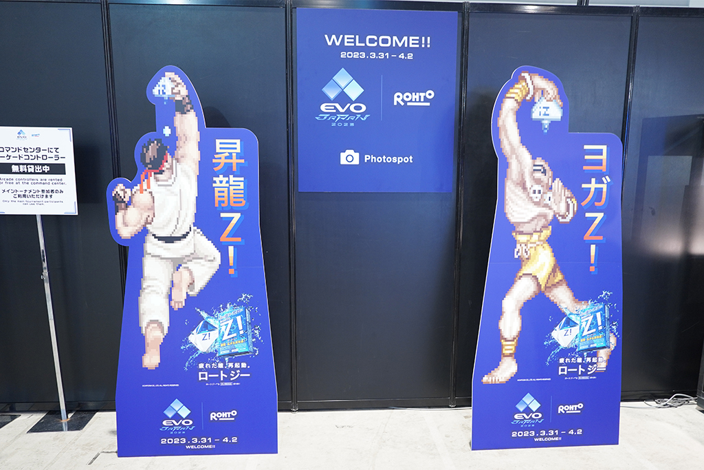 今回のEVO Japan 2023のメインスポンサーでもあるロート製薬では、ブースにストリートファイターとコラボしたポップを展示。また、会場内を動き回っていたロートジーマンが注目されていた。