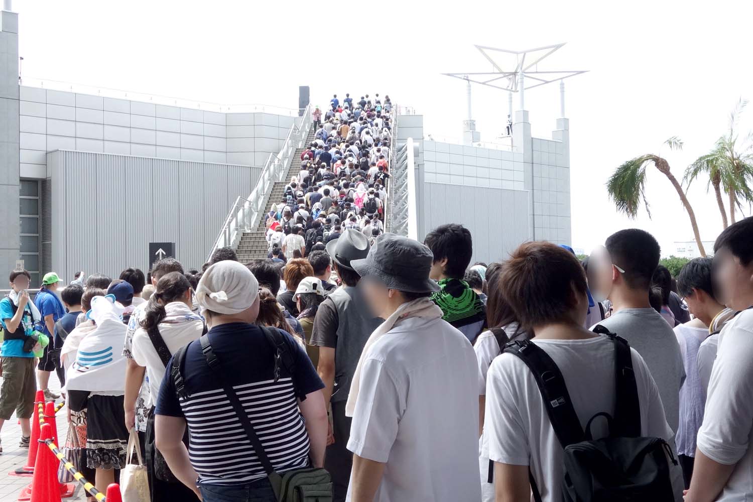 ゆりかもめ「東京ビッグサイト」駅は改札を左に出て階段で1Fに下り、センタープロムナードの入場待機列を目指すことになる。