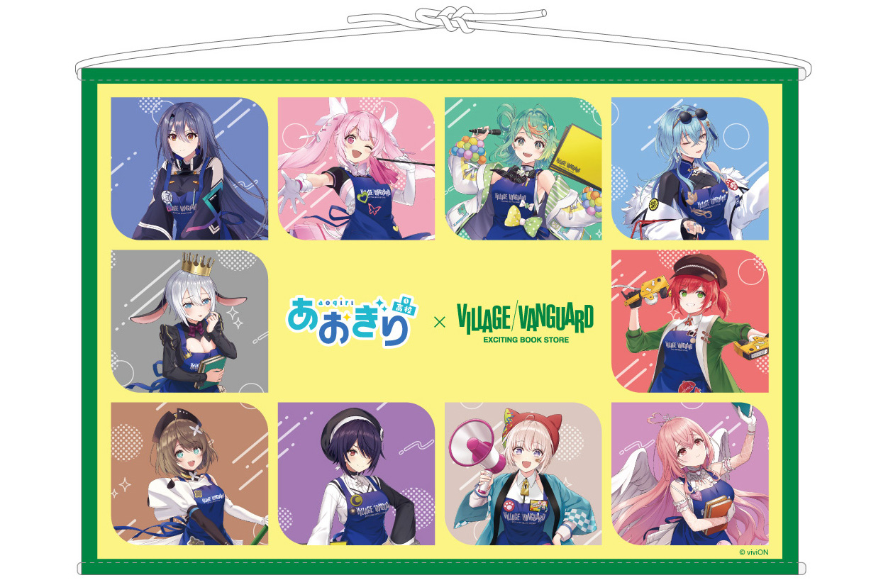このコラボでは、音楽やファッション、キャラクター、コミックなど魅力的なサブカルチャーがギュッと詰まったヴィレヴァンの店舗において、もし、あおぎり高校のメンバーがスタッフになったら……というテーマで描きおろされたイラストを用いた装飾や、新作グッズなどが発売される。