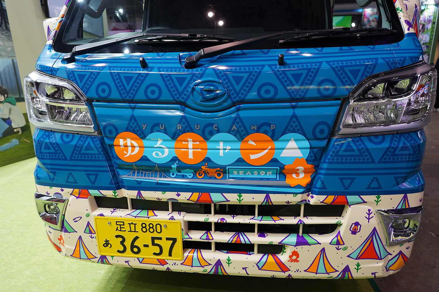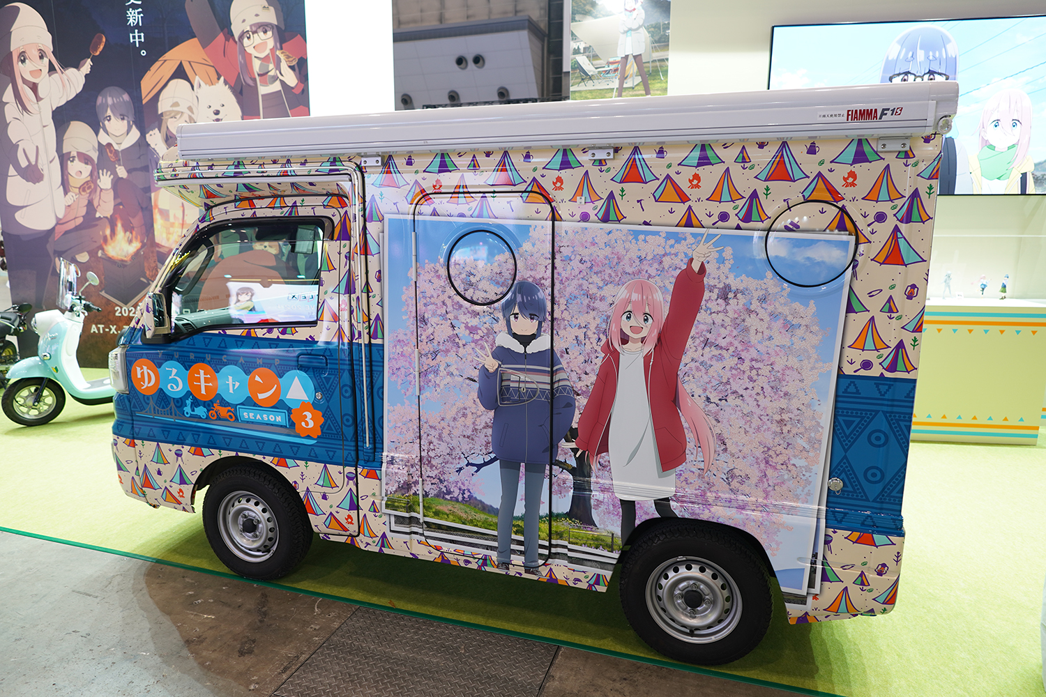 もっとも目立っていたのが、『ゆるキャン△ SEASON3』のラッピングが施されたキャンピングカー。デザインが秀逸で、細かい部分をじっくりと見ていられるクオリティだった。また、フリューはアニメキャラクターのフィギュアも制作しており、胸像タイプの大きなフィギュアを展示。その造形の細かさに、きっとファンも納得したことだろう。