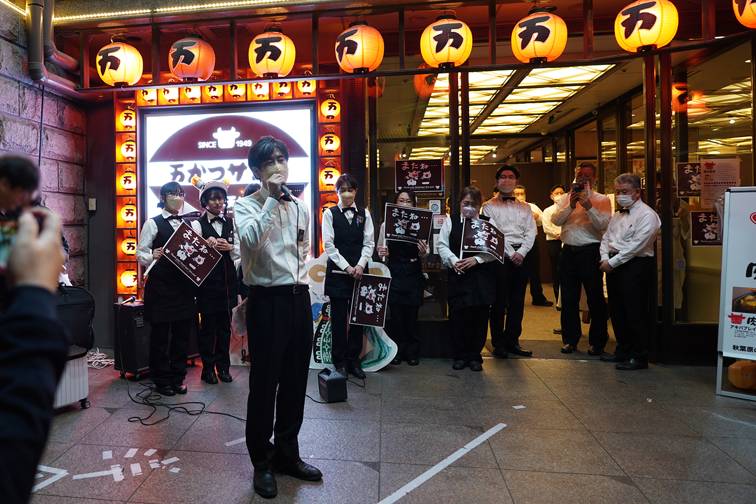 最後に店長から挨拶があり、お客様への感謝を伝えしんみりするものの、新店舗「アキバプレイス店」がオープンしたことをしっかりと告知して笑いを誘っていた。さらに秋葉原本店の店長が、アキバプレイス店の店長になるとのこと。