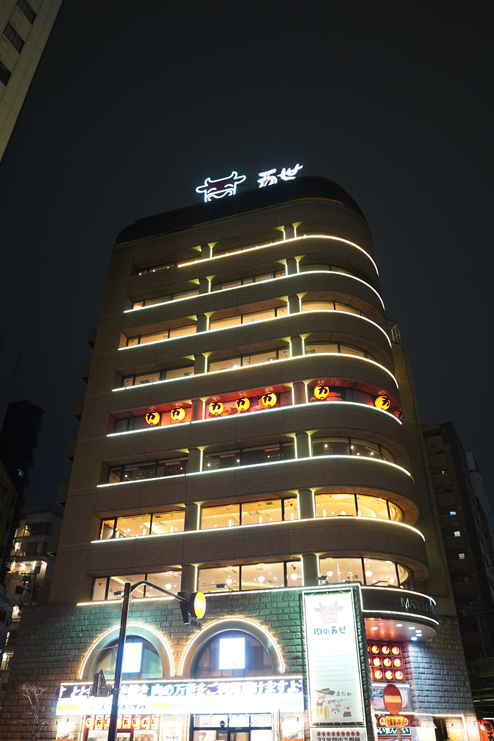 最後に全フロアを点灯している肉の万世 秋葉原本店の姿を見ることができた(筆者撮影)