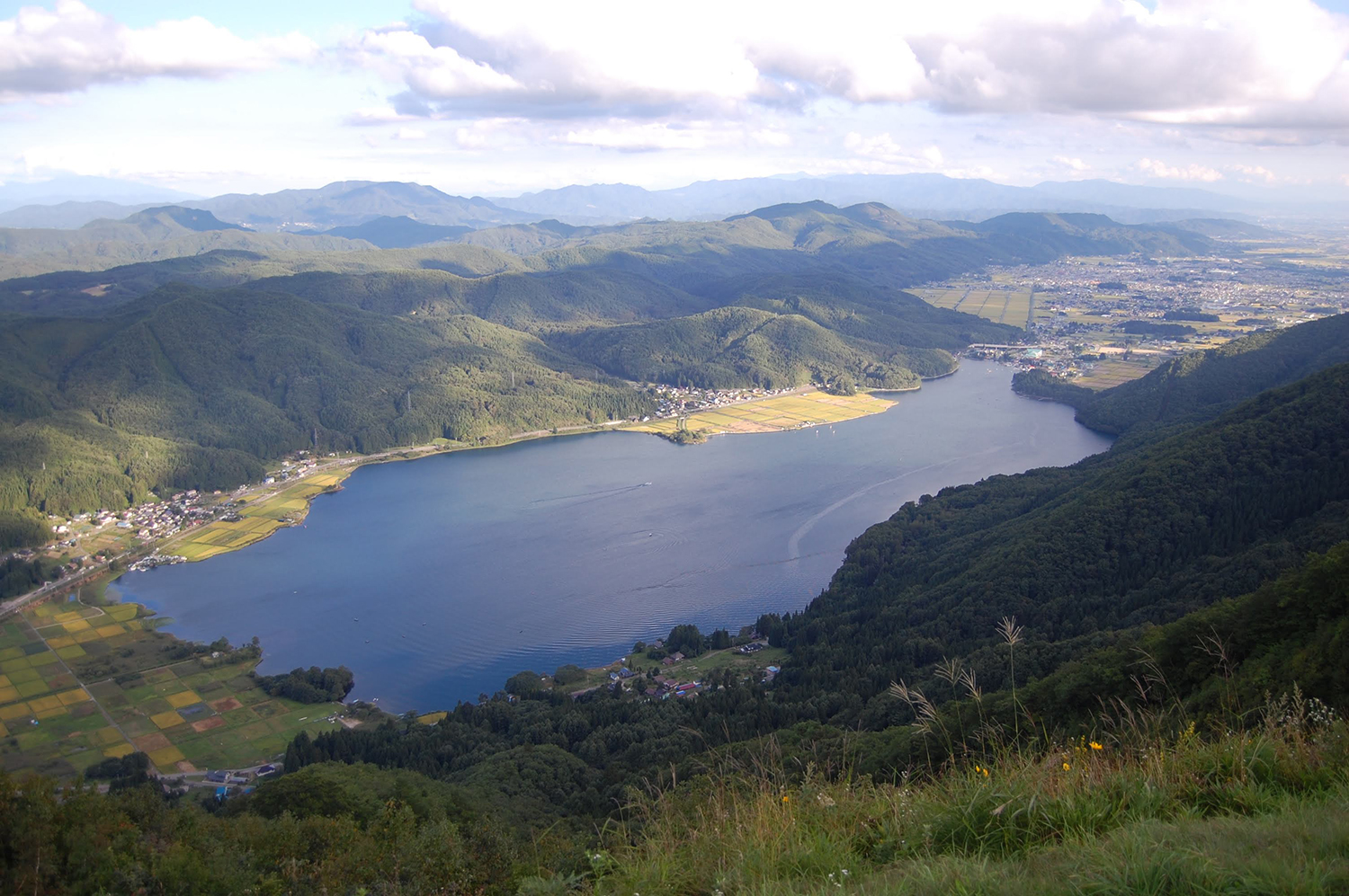近くの小熊山からこの絶景が撮影できるが、木崎湖はかなり大きいことが分かる(筆者撮影)