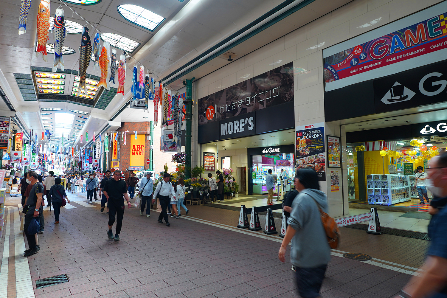 川崎駅前仲見世通りは銀柳街というほかの商店街とクロスしている通りのひとつで、細かい路地が特徴。飲食店が多く、金曜日や週末にはとても賑わっている。