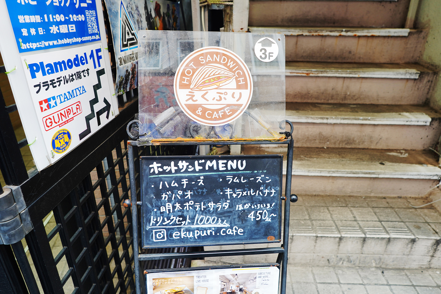 えくぷりの入口はビルを回り込んだところにある。お店は3Fなので階段を登っていこう(筆者撮影)