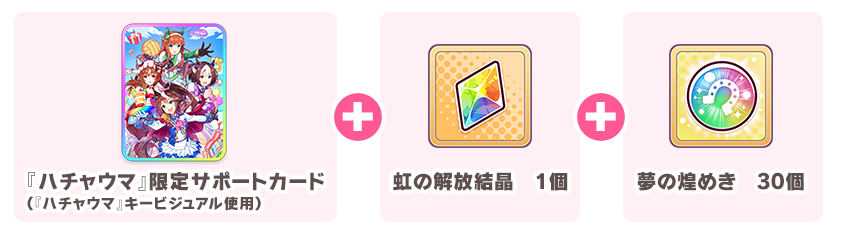 パッケージ版の初回生産版限定特典として、『ウマ娘プリティーダービー』で使える「ハチャウマ」限定サポートカードと虹の解放結晶1個、夢の煌めき30個が付いている(画像は「株式会社Cygames」より提供)
