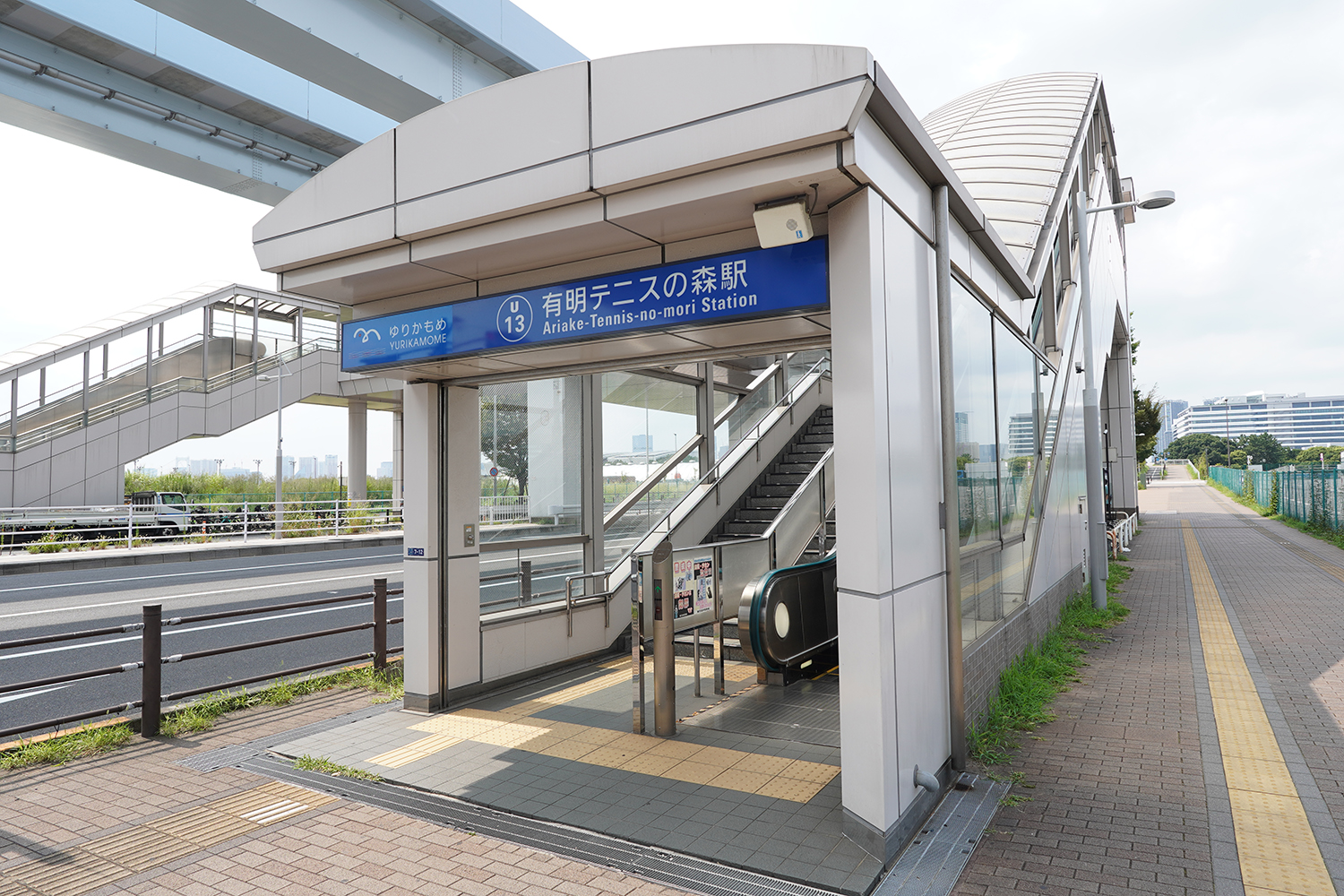 ゆりかもめ「有明テニスの森駅」はエスカレーターがあるため、荷物の持ち運びにはそこまで苦労しないだろう(筆者撮影)