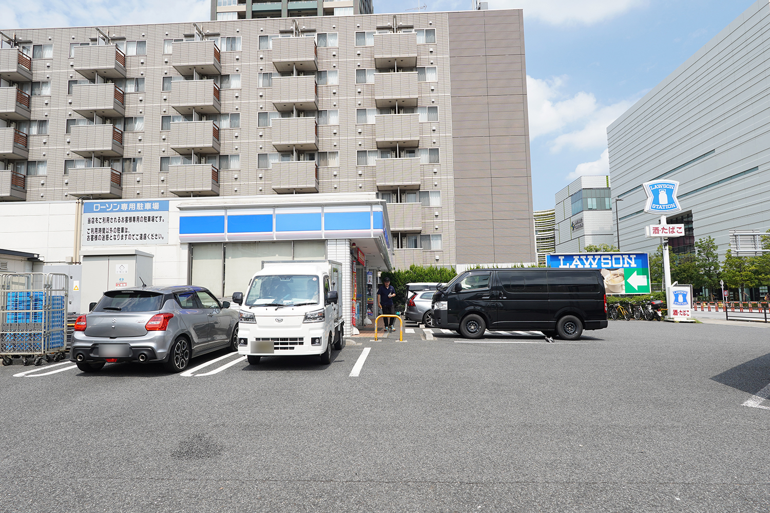 こちらは有明北駐車場から東京ビッグサイトに行く途中にあるローソン。水分や食料は持参するのが基本であり、ここのローソンは最後の砦と考えたほうがいいだろう(筆者撮影)