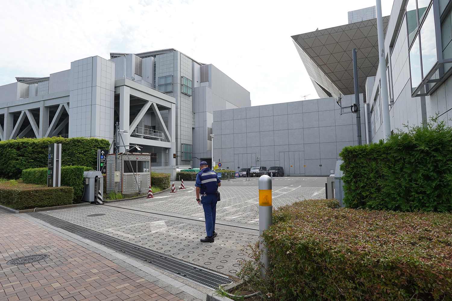 専用荷下ろし場は、東京ビッグサイト西1番ゲートから入り、西1ホールのトラックヤード付近に設置されるようだ(筆者撮影)