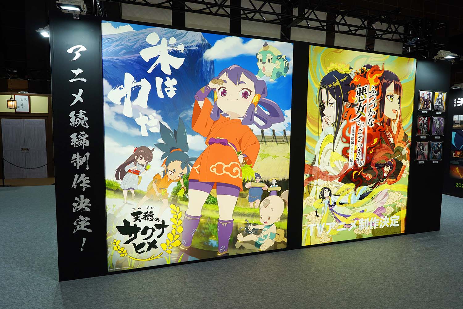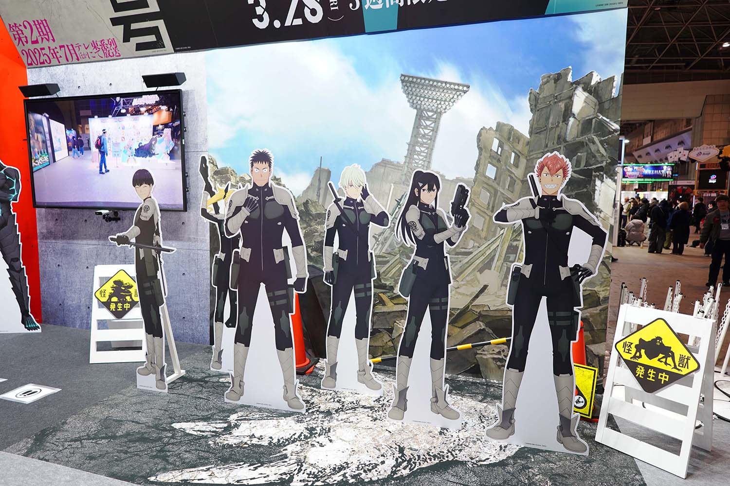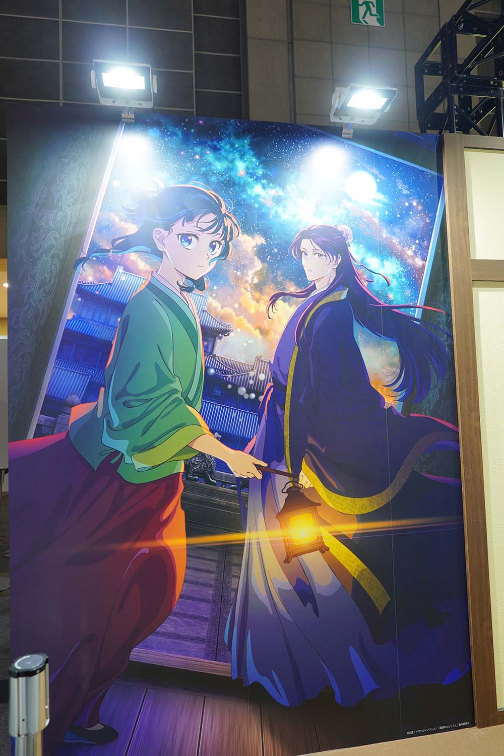 『僕のヒーローアカデミア』『葬送のフリーレン』『薬屋のひとりごと』など、人気作品を数多く発信している「TOHO animation」。ブース入り口には左右に巨大なスクリーンを展開し、そこに映し出されたブロックに触れると、ブロックが崩れてキービジュアルが出現するという派手な演出があった。