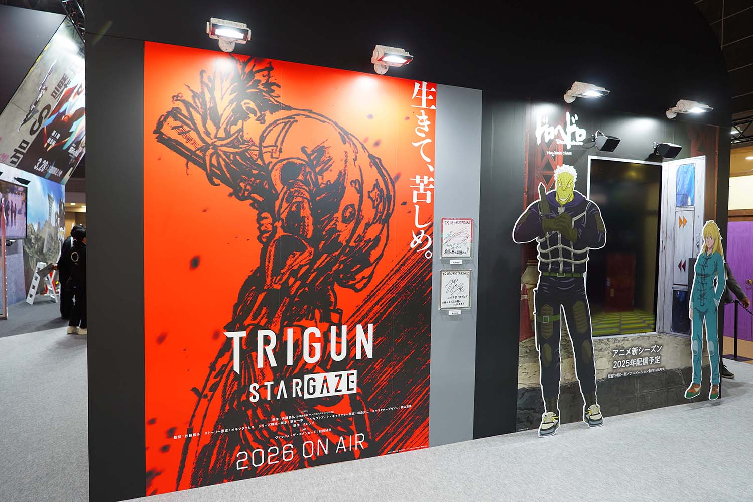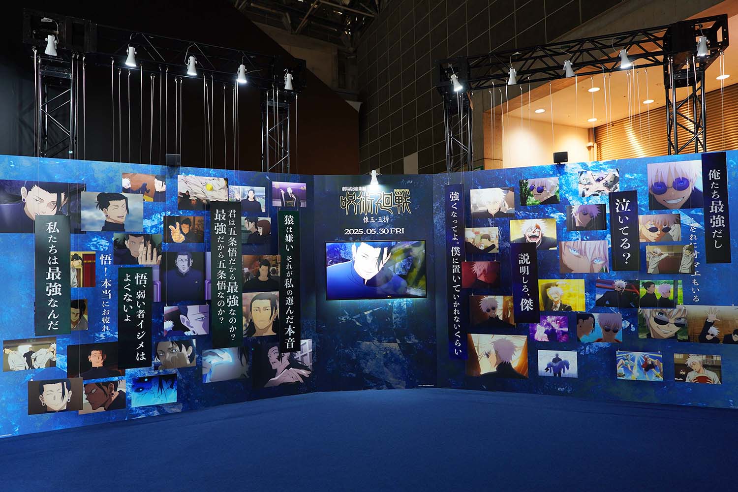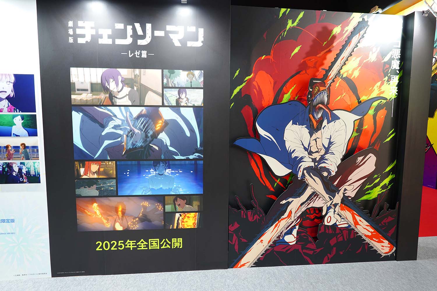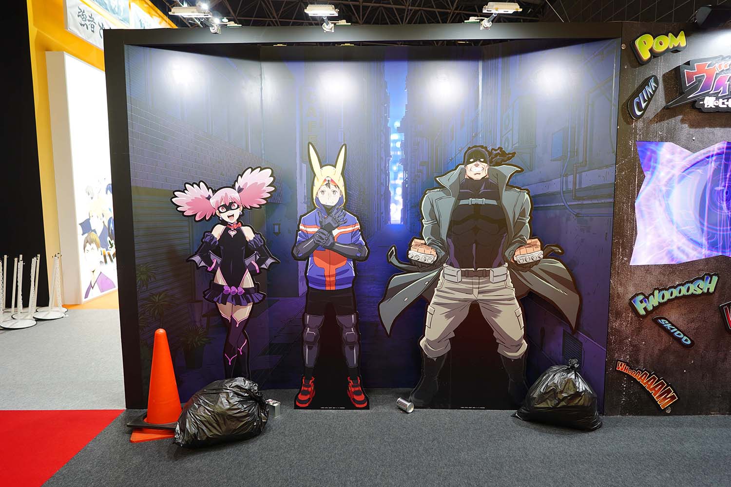 『僕のヒーローアカデミア』『葬送のフリーレン』『薬屋のひとりごと』など、人気作品を数多く発信している「TOHO animation」。ブース入り口には左右に巨大なスクリーンを展開し、そこに映し出されたブロックに触れると、ブロックが崩れてキービジュアルが出現するという派手な演出があった。