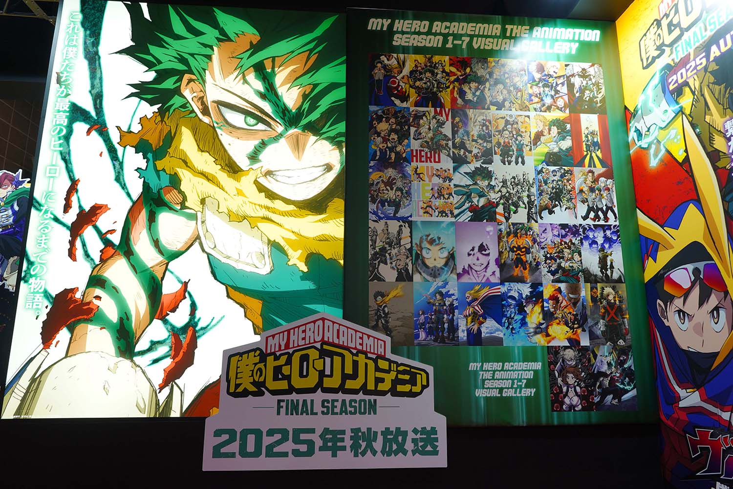 TOHO animationでは続編が期待される『葬送のフリーレン』や放送中の『薬屋のひとりごと』など大きな展示が多かった。『僕のヒーローアカデミア』は次作がファイナルシーズンとのことで放送が待ち遠しい(筆者撮影)