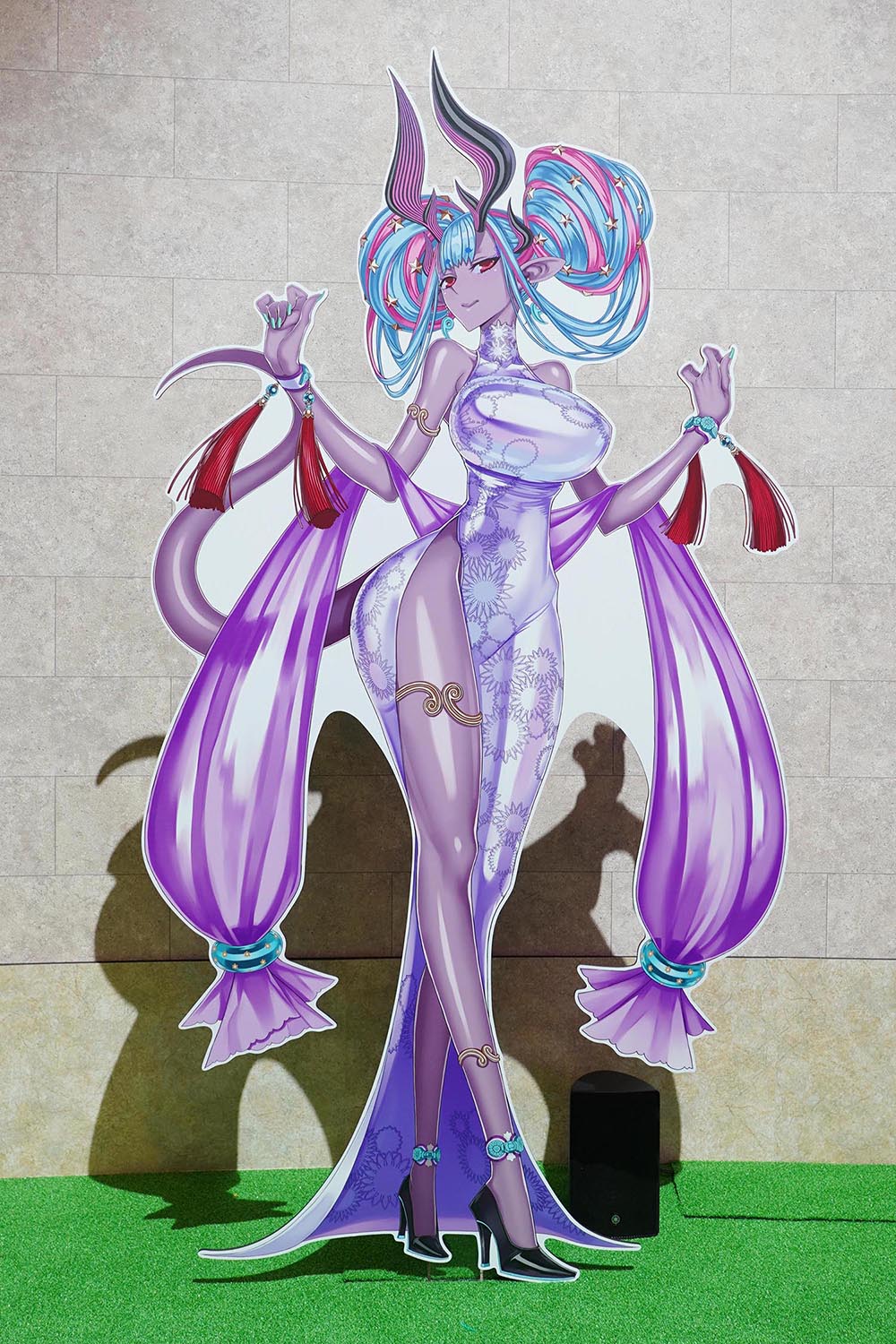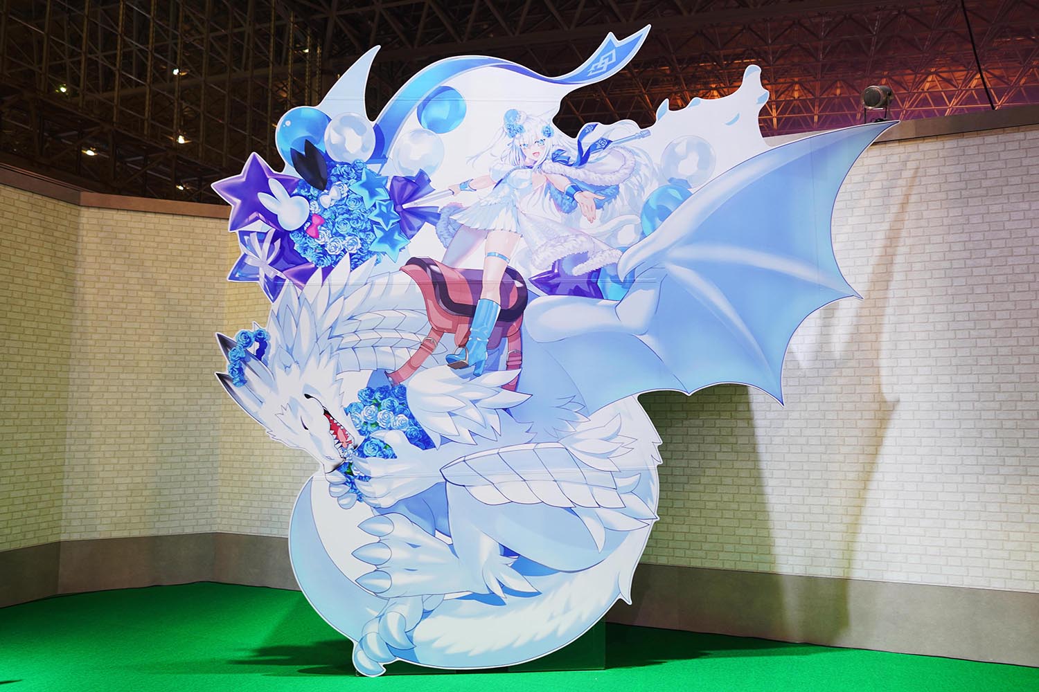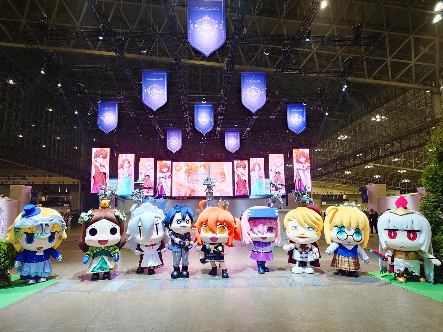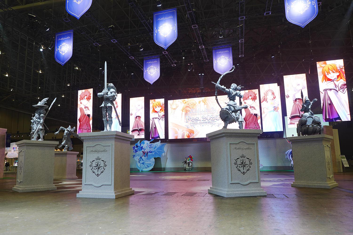 来場者の入場口となるウエルカムガーデンでは、大きなゲートが設けられ、FGOの原点である7クラスのモニュメント「Monuments of the Servant Classes」や、スタンディで彩られた華やかなゲートで迎えてくれた。背面にはメッセージフラッグを掲出し、来場者の記念寄せ書きを募っていた。