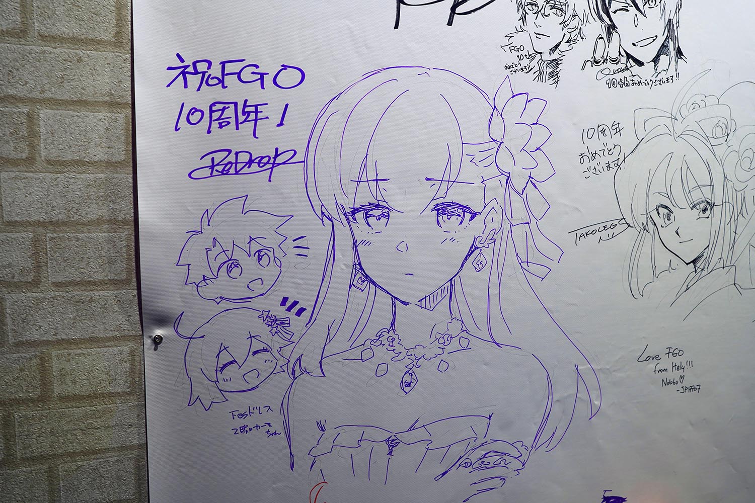 毎回恒例となっている「メッセージフラッグ」は、FGOに参加しているクリエイターやイベントに来場した人が一緒に書き込むことができる、この世にひとつしかないメッセージボード。