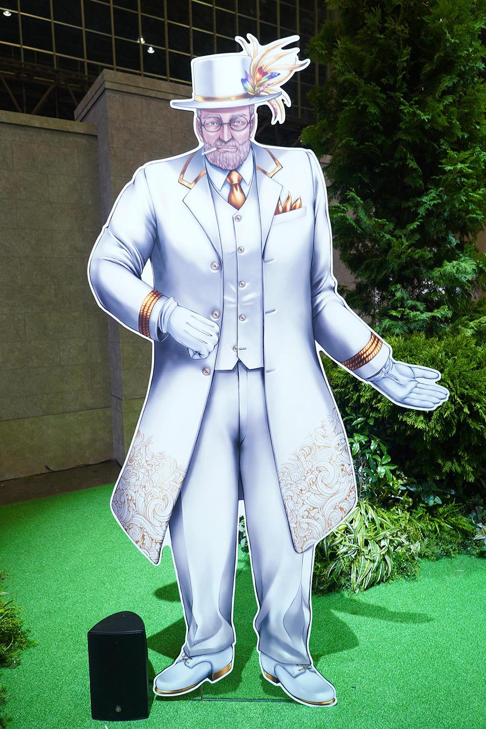 ウェルカムガーデンで行われた撮影会。公式コスプレイヤーとキグルミが一同に会した。ゲートではFGO第2部開発ディレクターのカノウヨシキ氏が、参加者と写真を撮る場面も(筆者撮影)