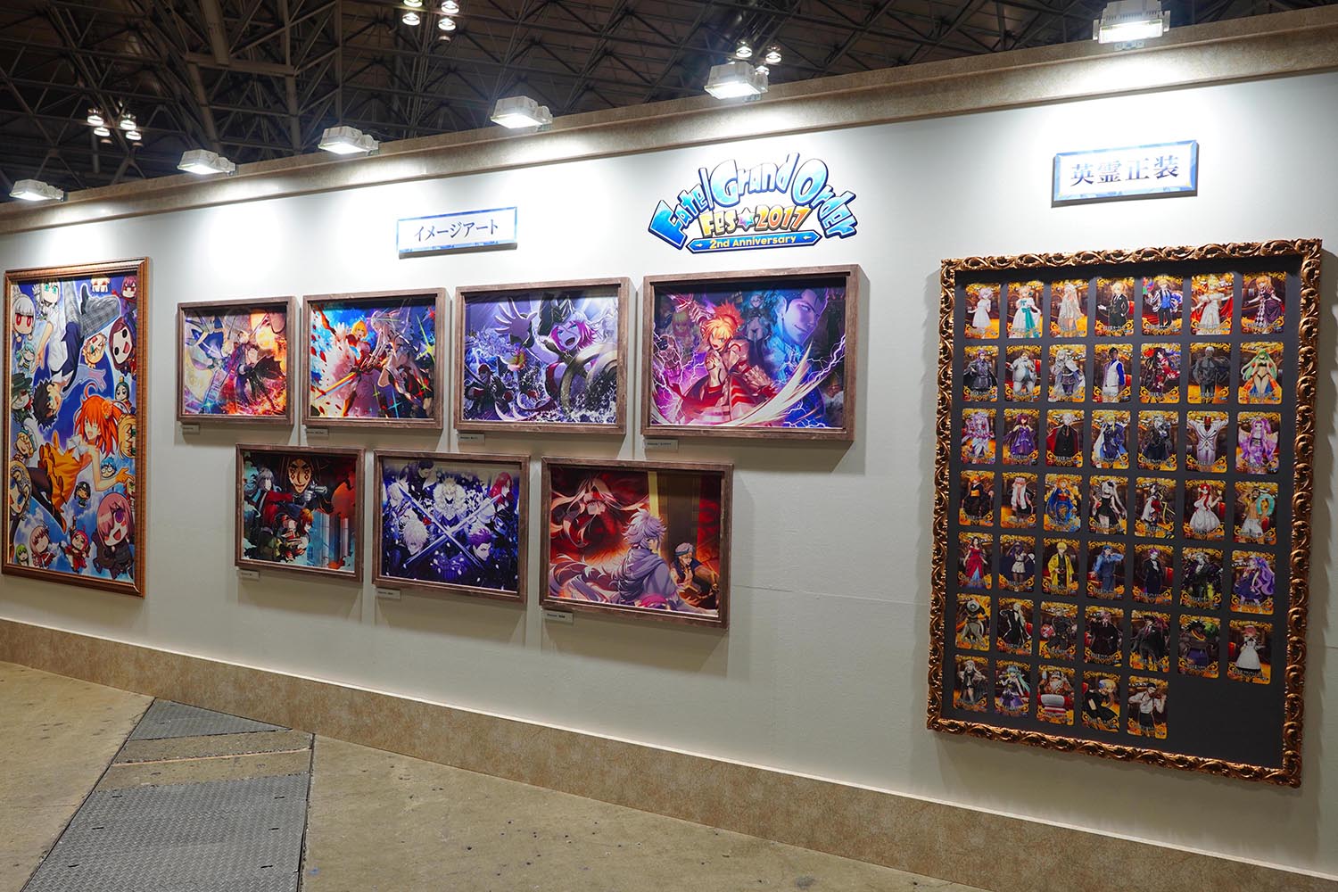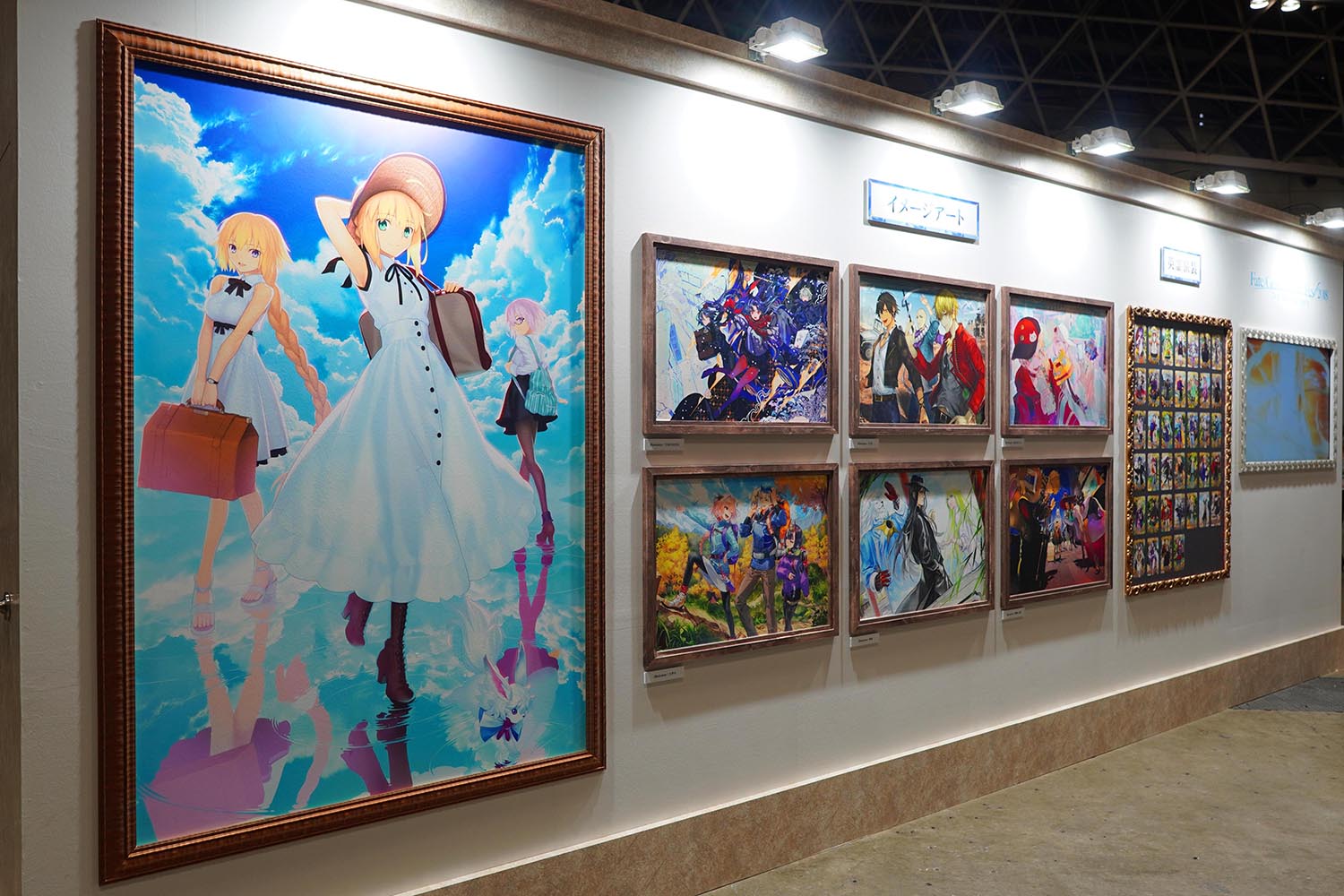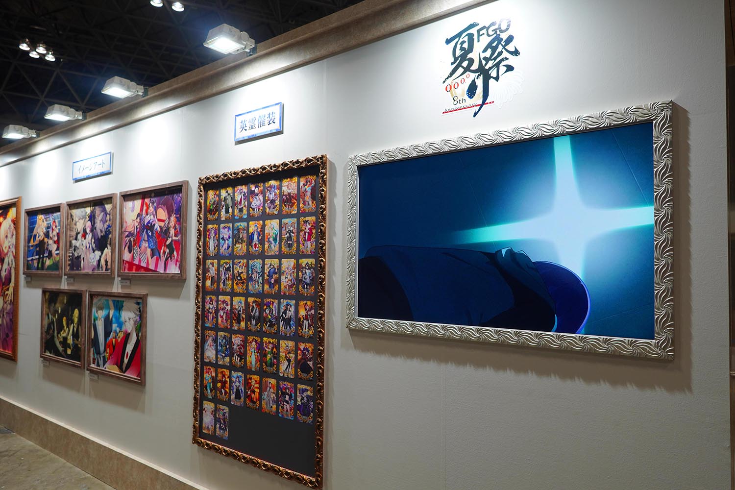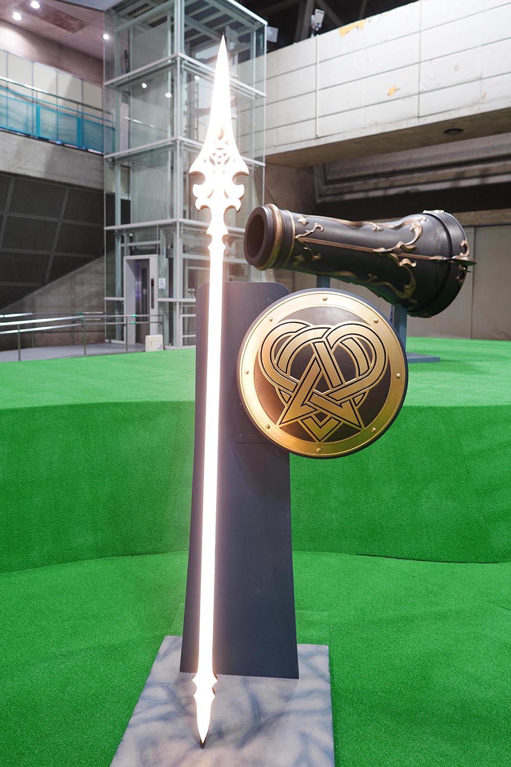宝具や歴代のフェスメインビジュアルなどが展示された、ギャラリースペース。宝具は等身大の大きさで細部までこだわった作り込みだ。