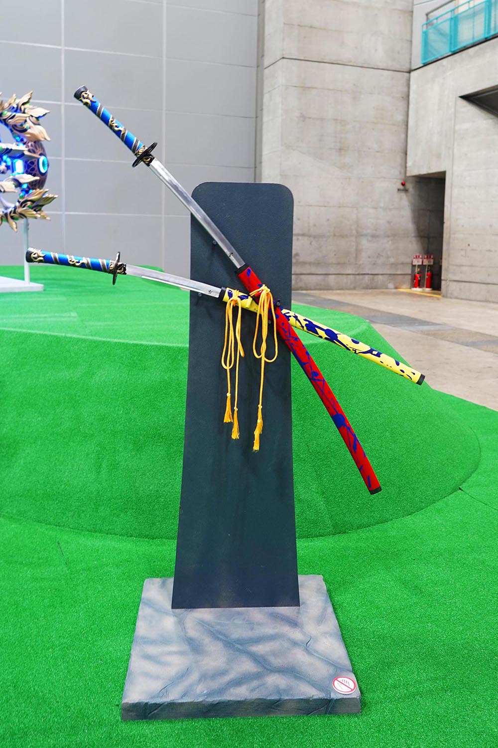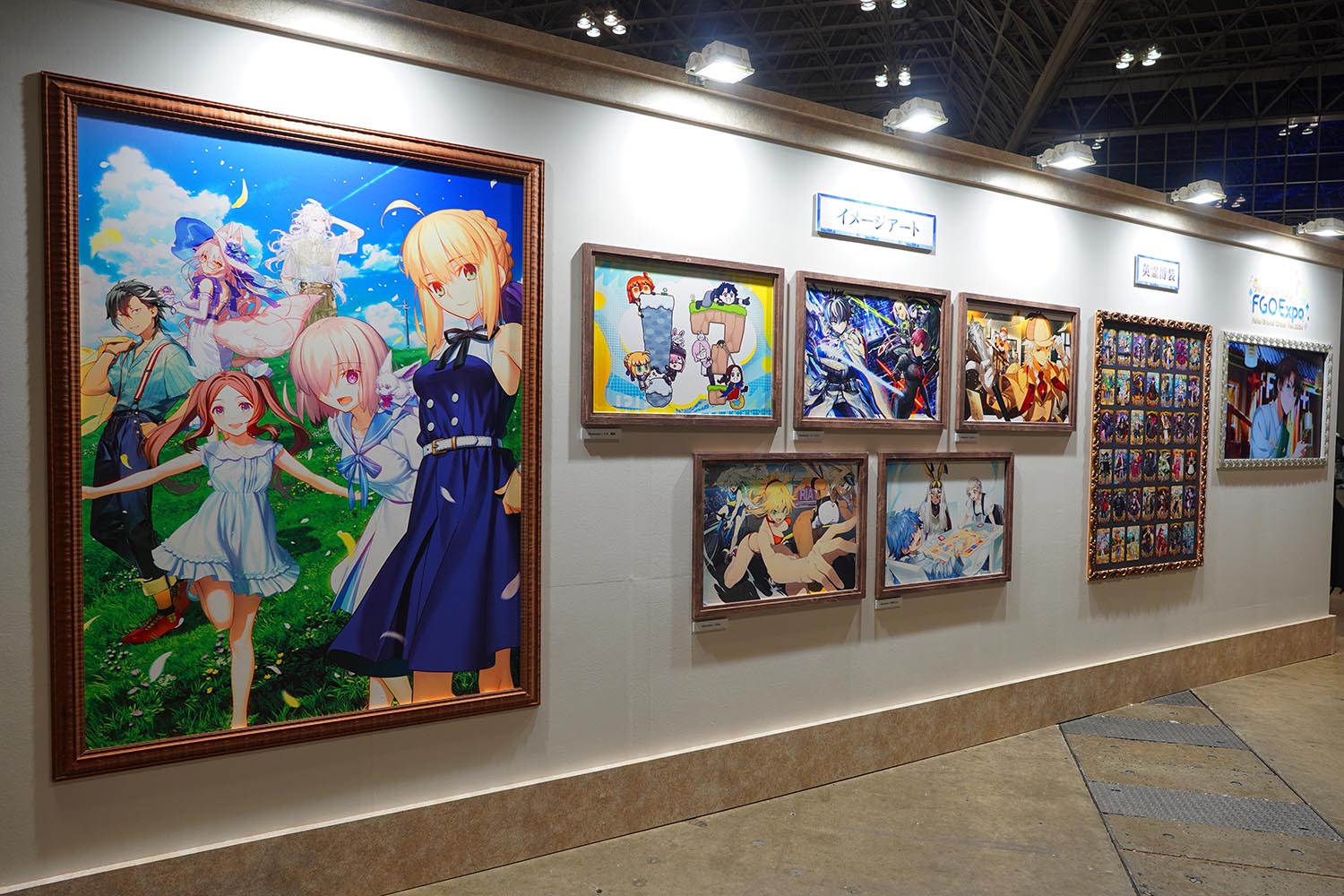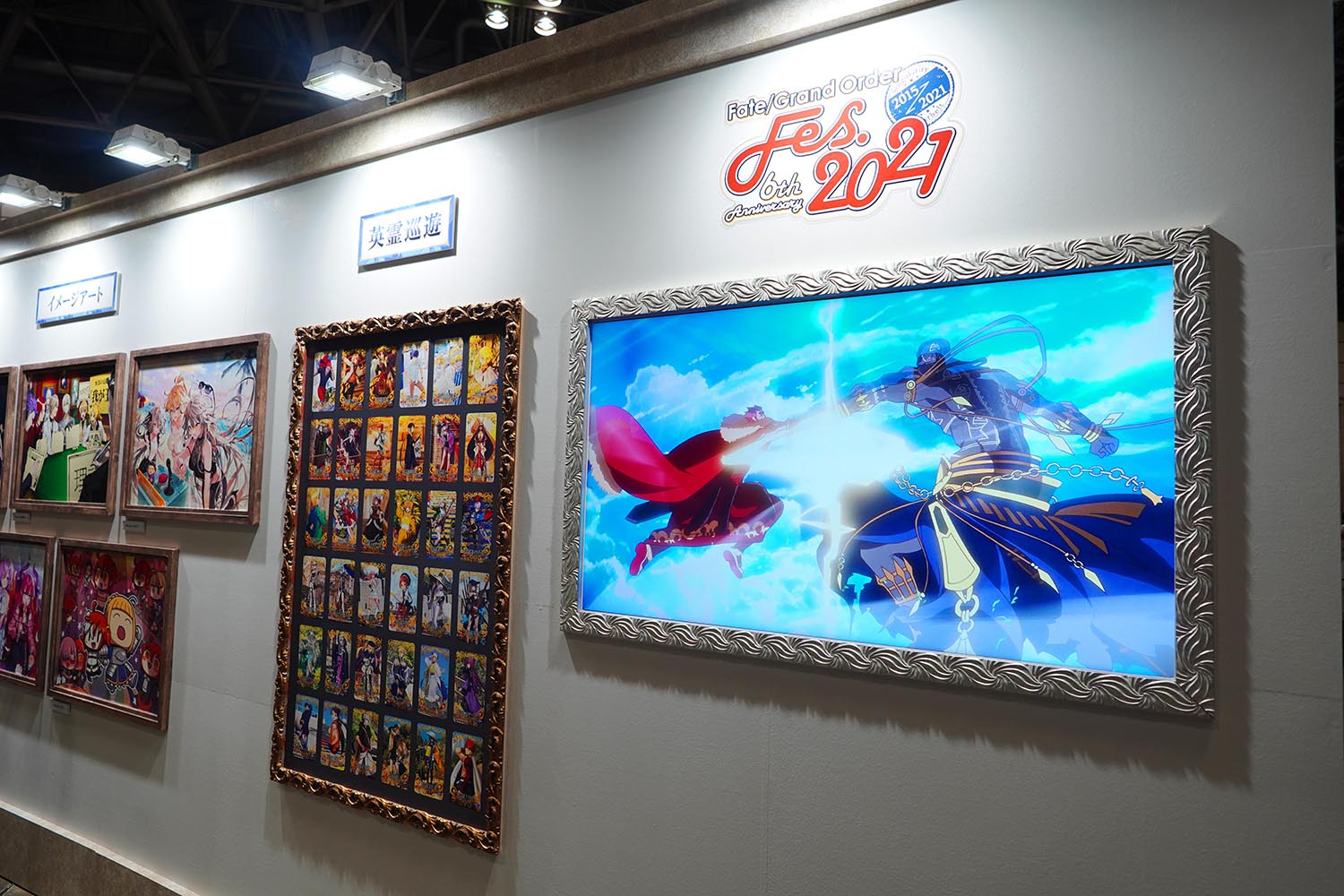 宝具や歴代のフェスメインビジュアルなどが展示された、ギャラリースペース。宝具は等身大の大きさで細部までこだわった作り込みだ。