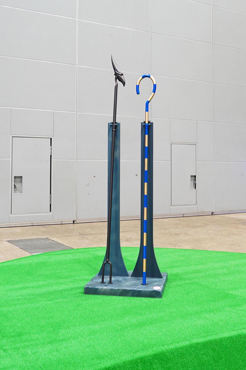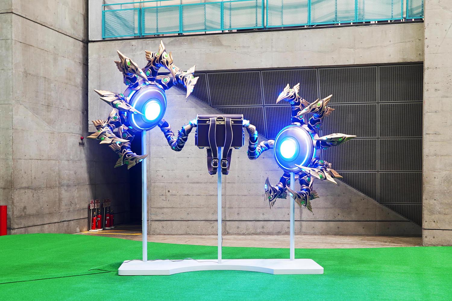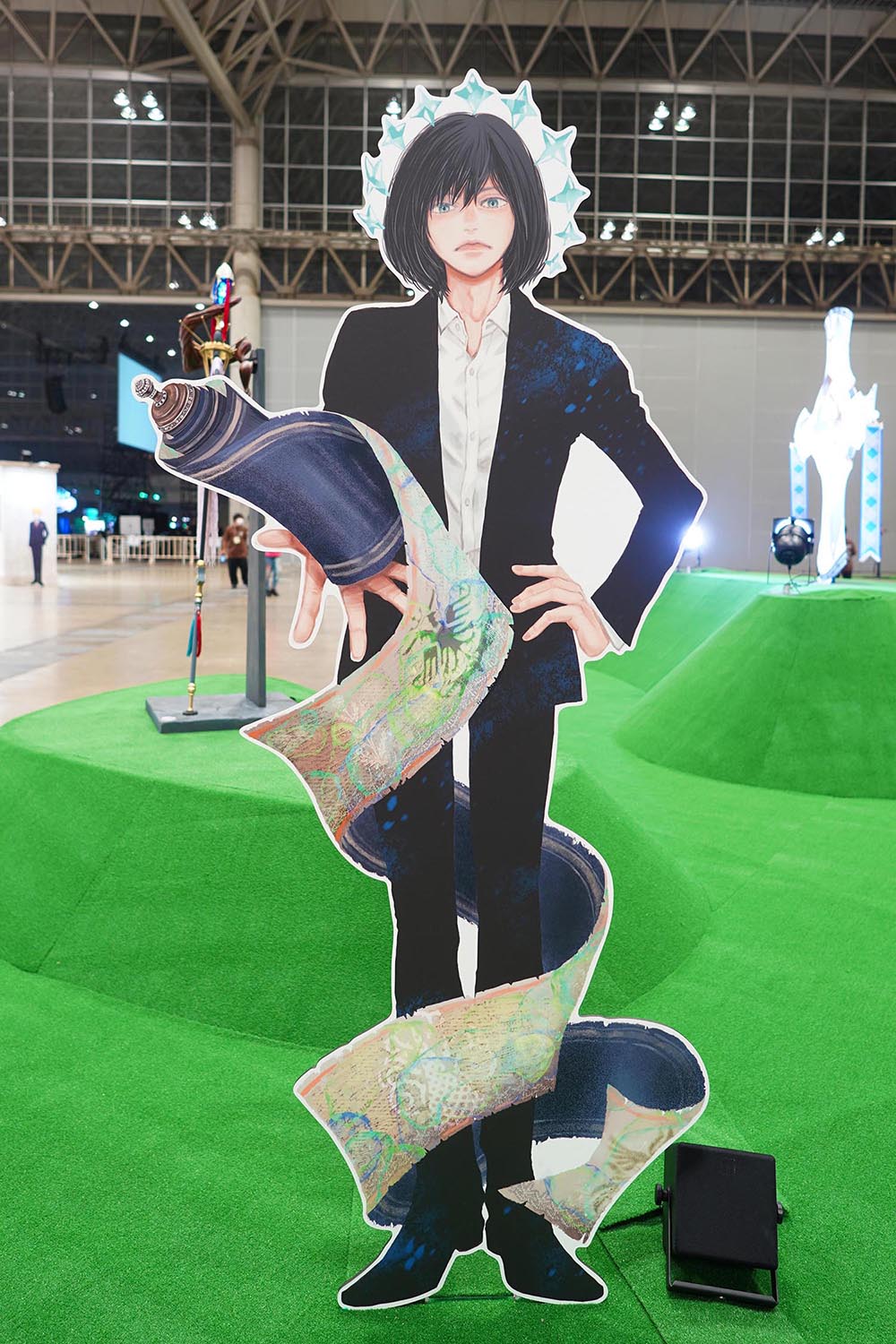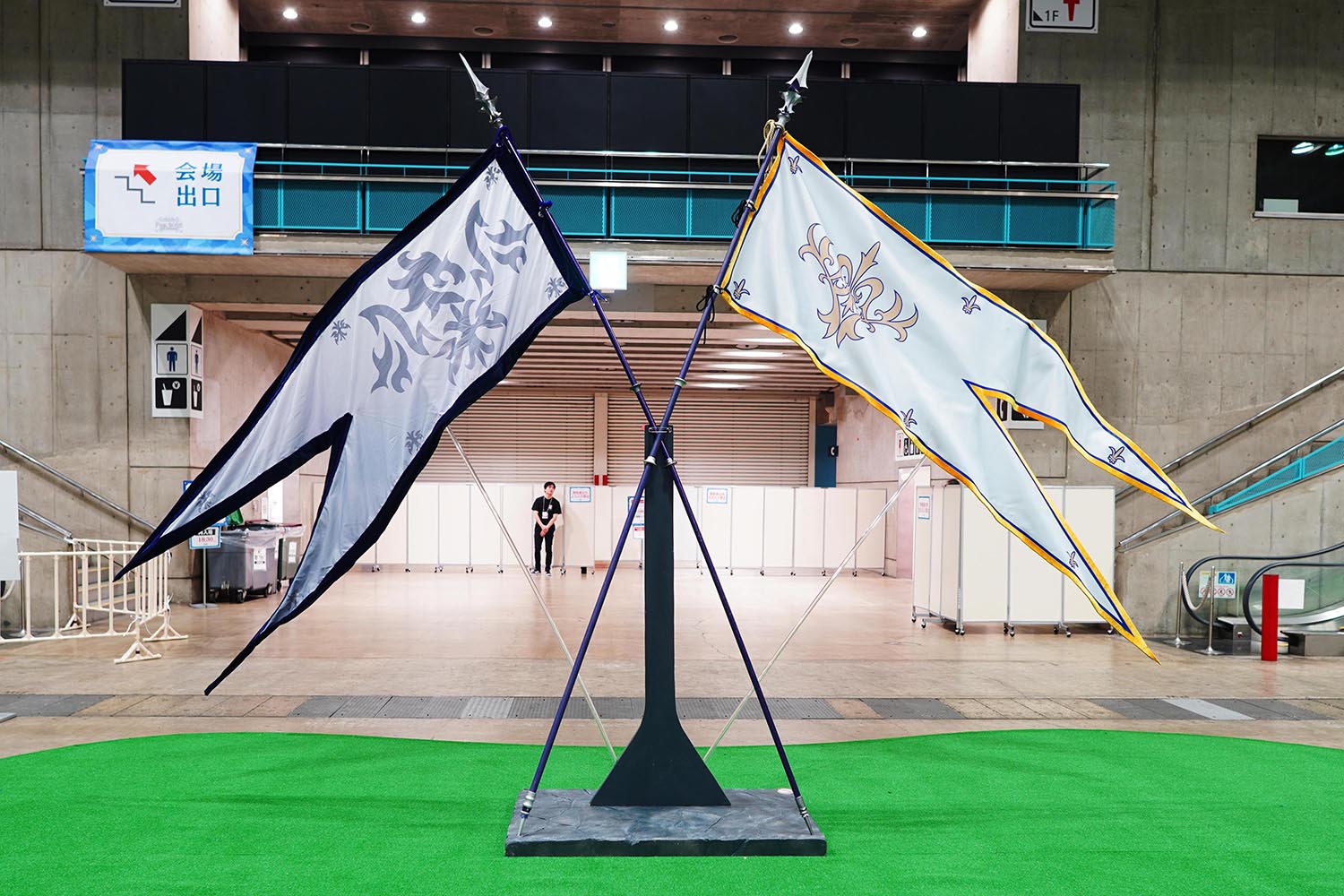 宝具や歴代のフェスメインビジュアルなどが展示された、ギャラリースペース。宝具は等身大の大きさで細部までこだわった作り込みだ。