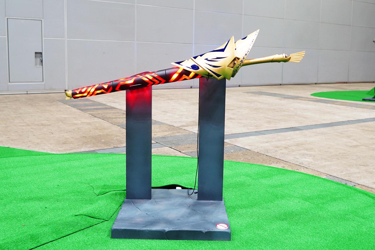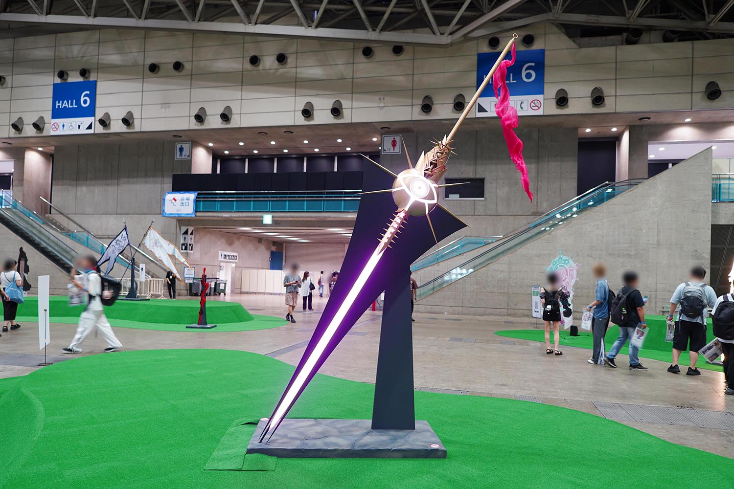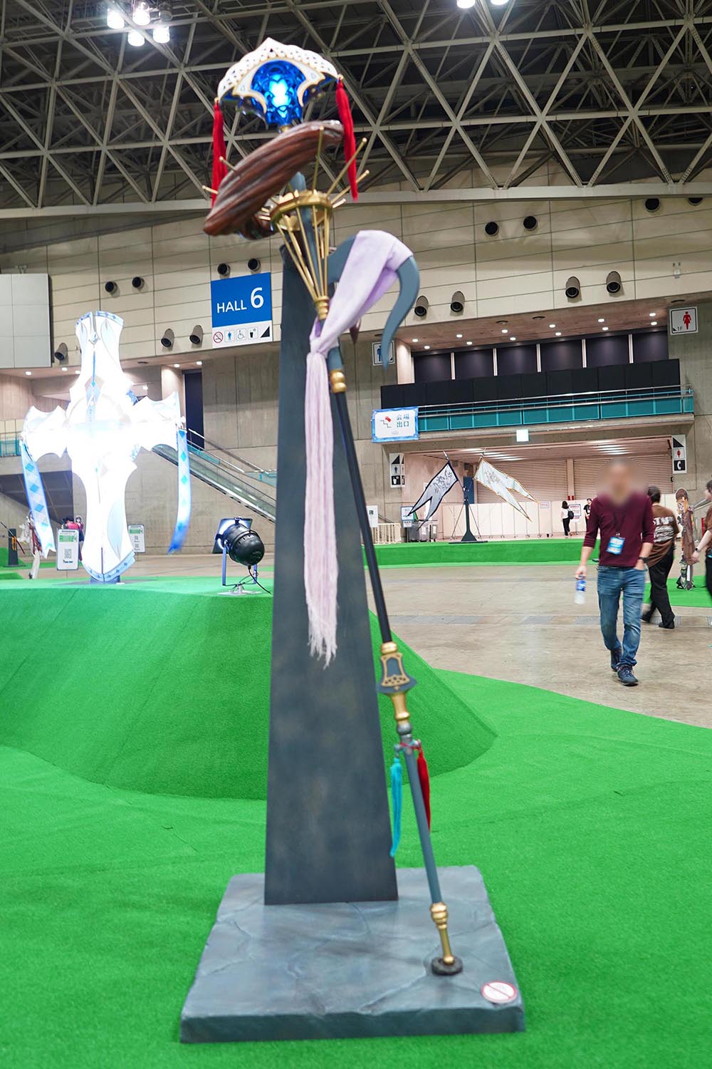 宝具展示エリアでは今までの実物大の宝具をこれでもかと展示。かなりの数の展示に、参加者もいろいろなアングルからカメラに納めていた(筆者撮影)
