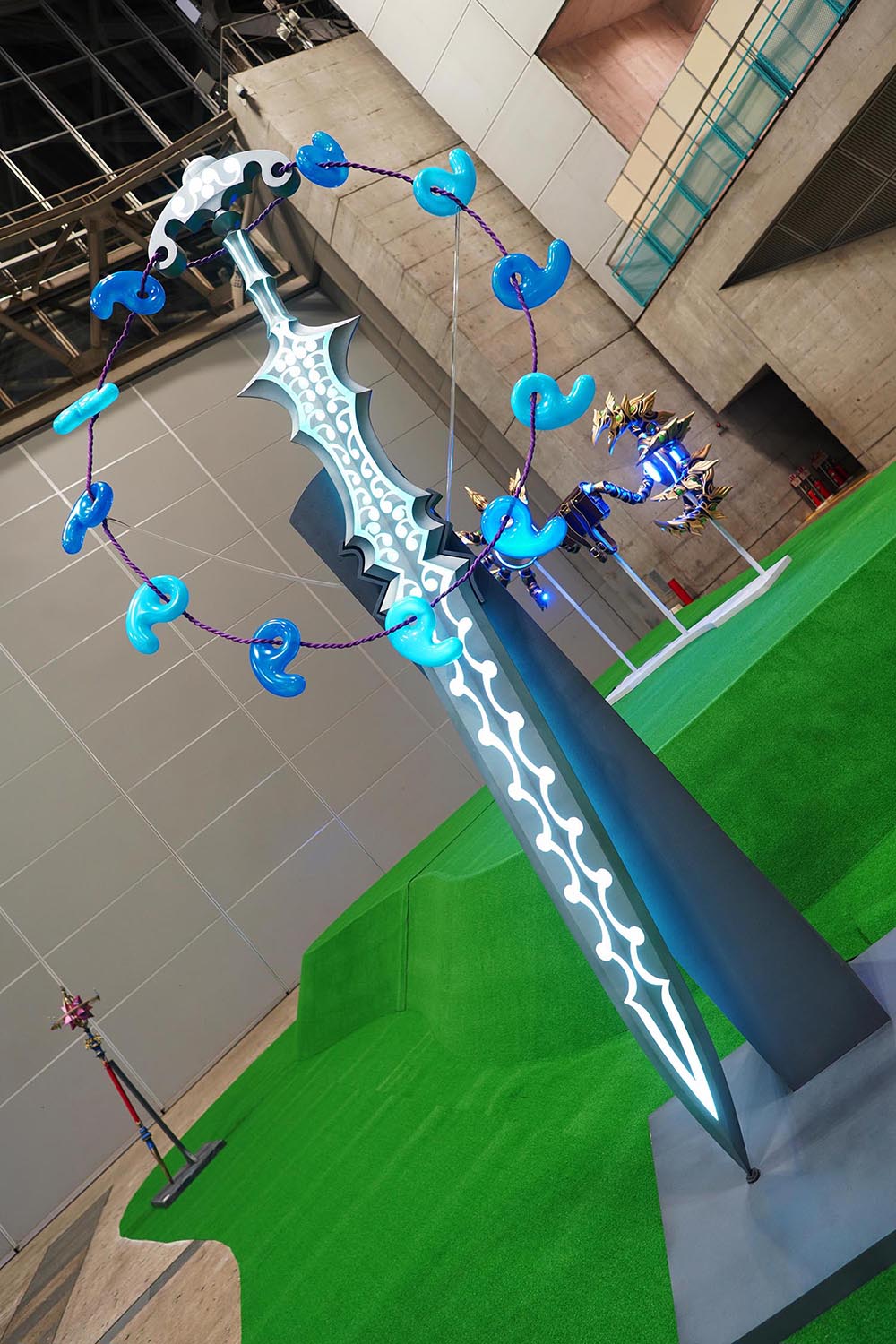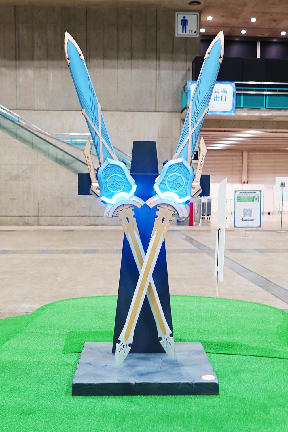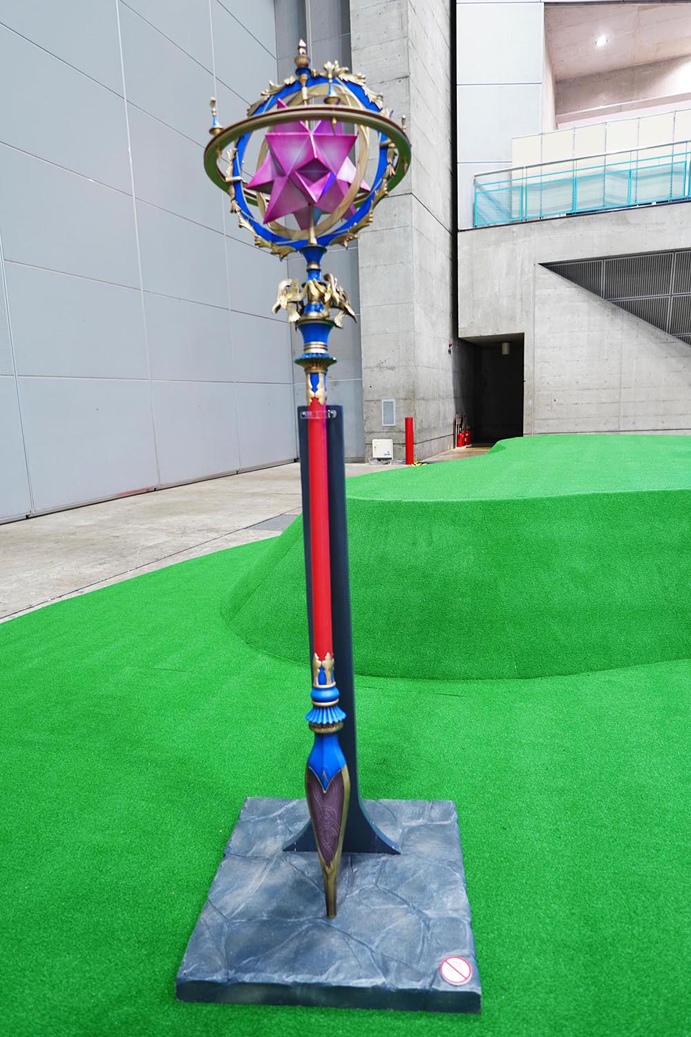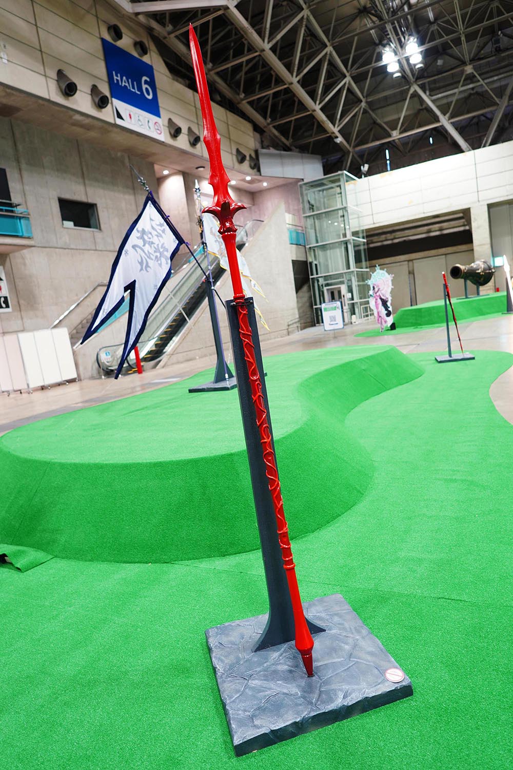 宝具展示エリアでは今までの実物大の宝具をこれでもかと展示。かなりの数の展示に、参加者もいろいろなアングルからカメラに納めていた(筆者撮影)