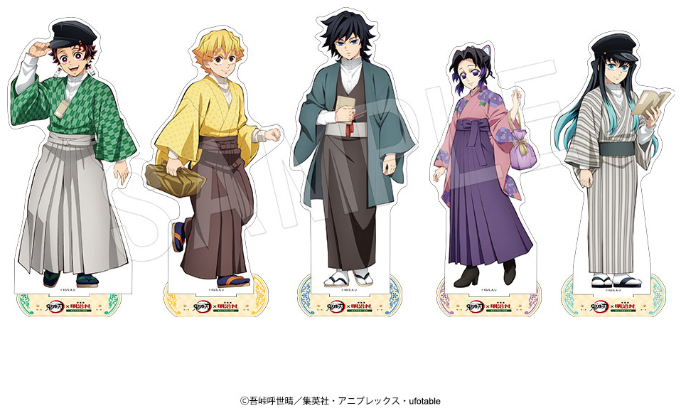 『明治村特別任務録』は、TVアニメ『鬼滅の刃』の世界観を歴史的建造物が立ち並ぶ屋外博物館「明治村」の空間と融合させたコラボイベント。物語の舞台とも共鳴するレトロな雰囲気を背景に、主人公・竈門炭治郎をはじめ、我妻善逸や冨岡義勇、胡蝶しのぶ、時透無一郎といった人気キャラクターたちが書生服や女学生風のハイカラな衣装に身を包んだ新規描き下ろしイラストで登場する点が大きな特徴です。会場内では描き下ろしイラストを使用した多数のオリジナルグッズが販売され、ファンが思わず手に取りたくなる商品ラインナップが揃っていますよ。