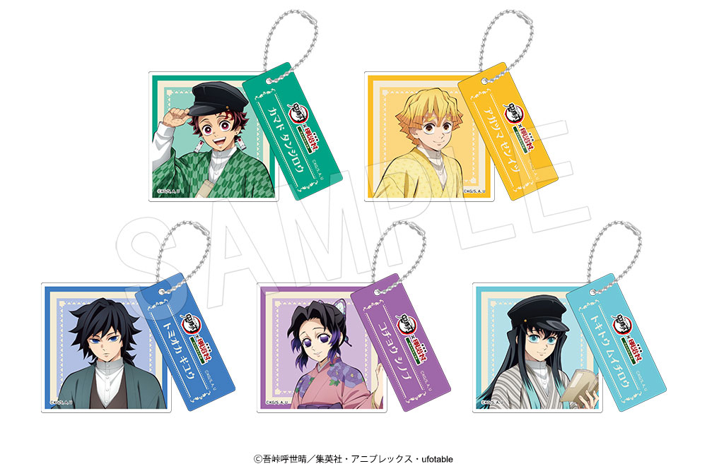 販売されるアイテムには、『鬼滅の刃』キャラクターごとのアクリルスタンドやハーフタペストリー、ステッカーセット、トレーディング仕様のマット缶バッジやアクリルキーホルダー、さらにはトートバッグやあられなど幅広い商品が用意されています。