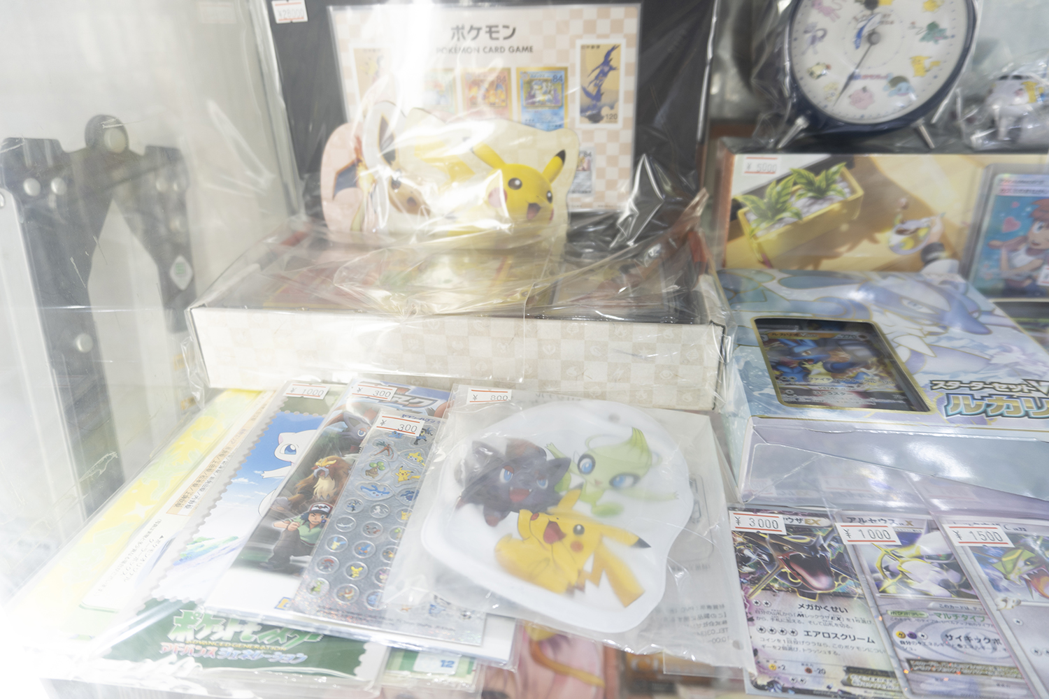 こちらはアニメキャラなどのグッズコーナー。今、人気が集中しているポケモンカードが見つかるかも!(筆者撮影)