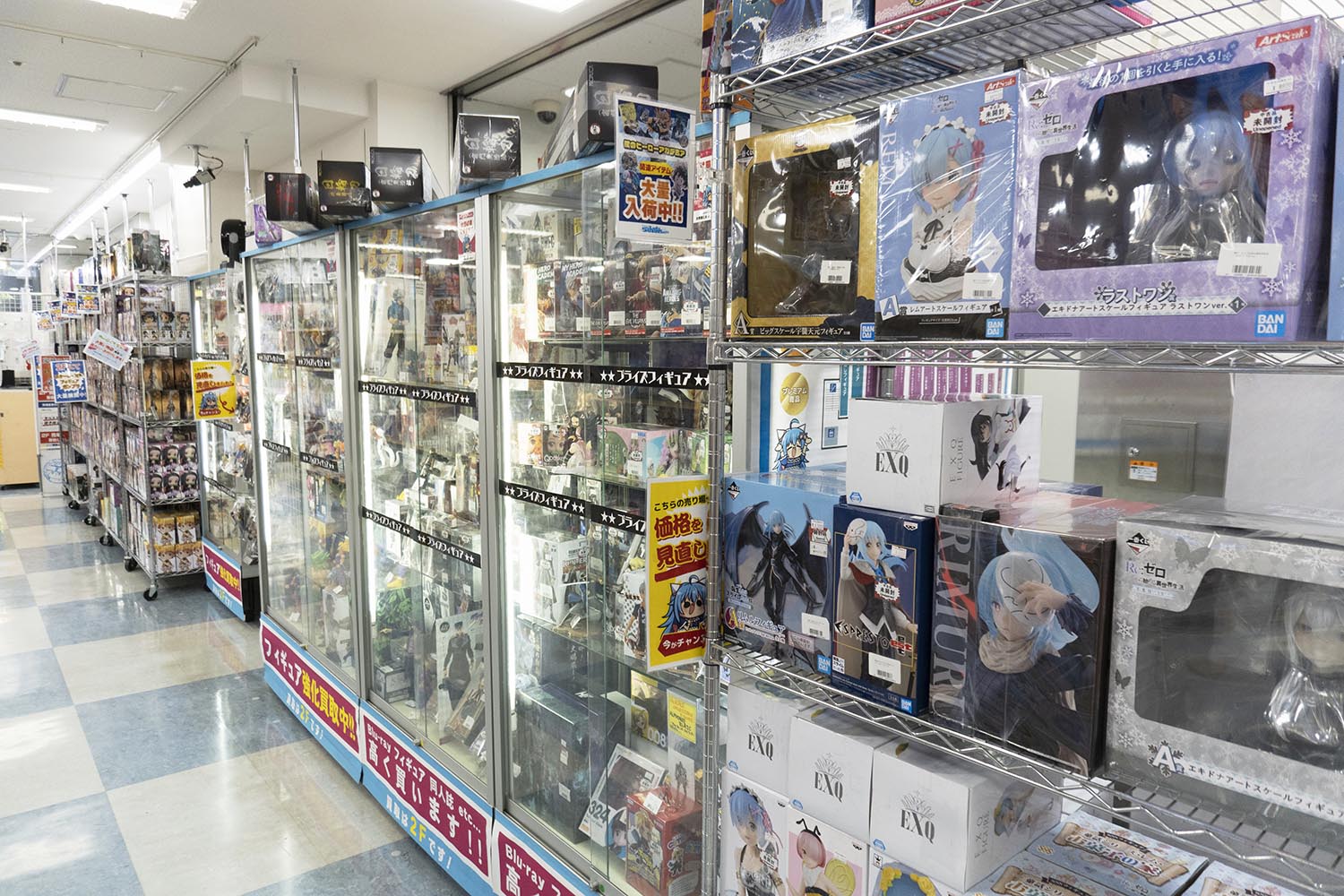 1Fのショーケースには人気フィギュアが勢ぞろい。完売した商品には人気も集中し、プレミア価格がついているので、しっかりと吟味しよう(筆者撮影)