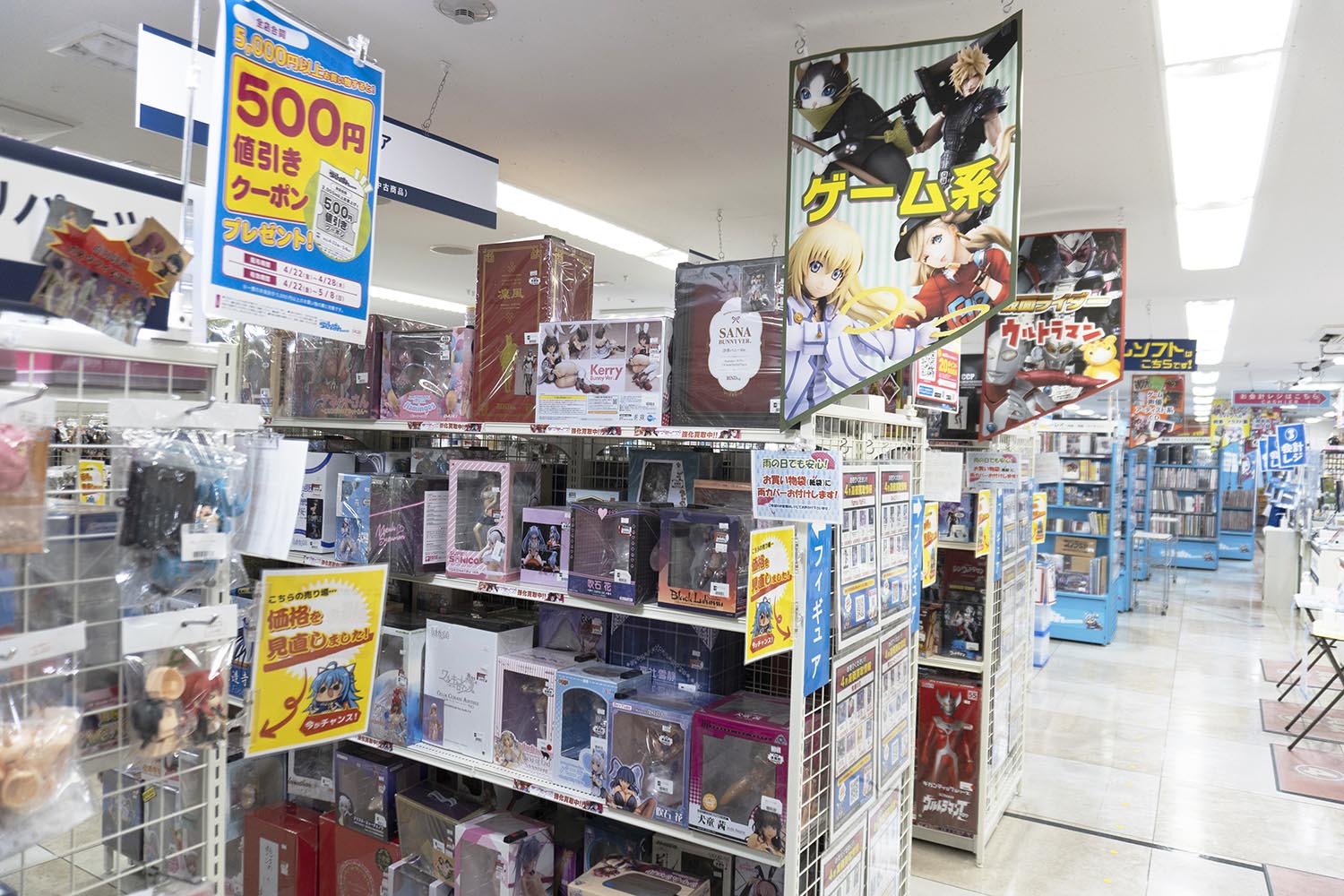 アキバカルチャーズZONEの1・2Fに店舗を構えるのが、ユーズドアイテム専門店の「らしんばん」。フロア全体を使った展示販売がウリ!