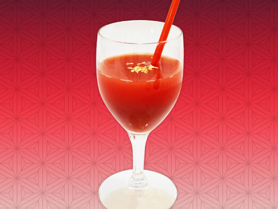 こちらがSNSへ投稿することで注文できるスペシャルドリンク。トマトジュース+クランベリージュース+金箔+赤ストローの特別仕様だ(写真はタブリエ・マーケティング株式会社提供)
