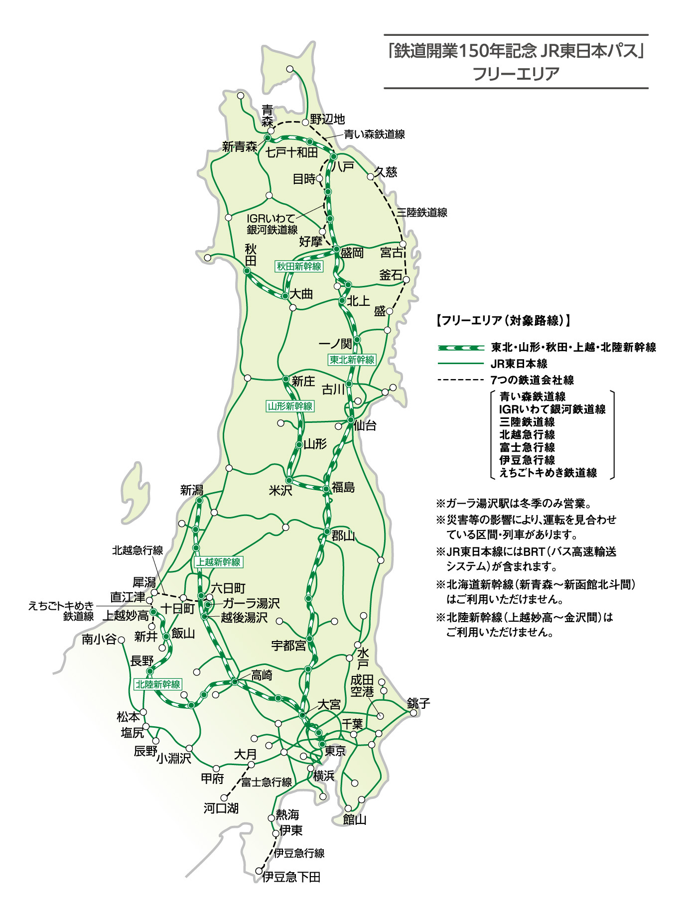 ■鉄道開業150年記念 JR東日本パス(価格&利用期間)