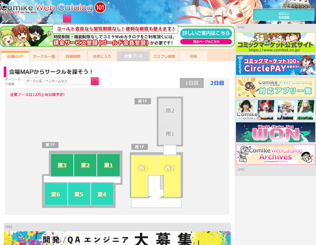 入場チケット購入前にサークルの日時と配置場所を確認!第101回コミケ(C101)のサークル配置が明らかに!「コミケWebカタログ」がC101仕様に更新
