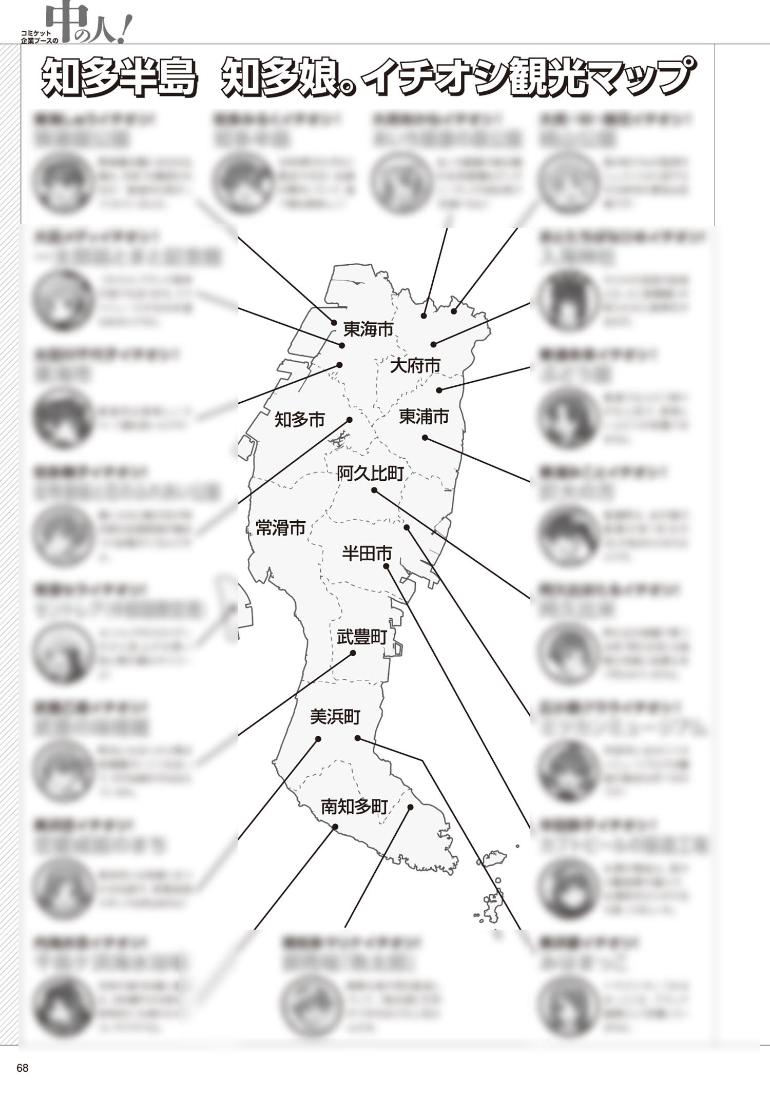 知多娘。たちがおすすめてくれる観光スポットは、自身が担当している場所のなかから厳選したものばかり。知多半島の良いところが満載だ(コミケPlus Vol.18から転載)