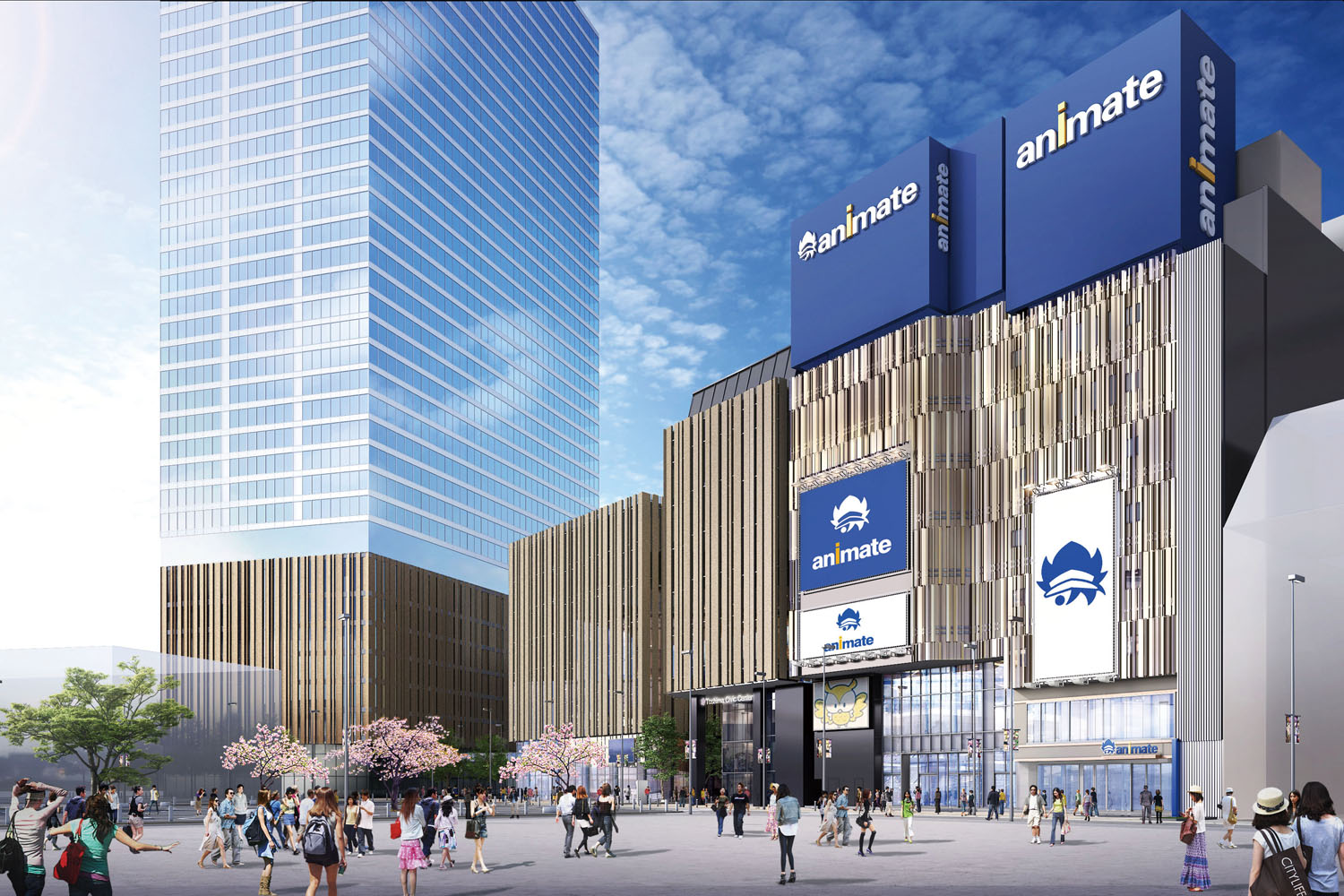2023年春にグランドオープン予定のアニメイト池袋本店の完成予想図。外観はHareza池袋と連続性のあるデザインに変更されるとのことで、今から完成が楽しみだ(画像はアニメイト提供)