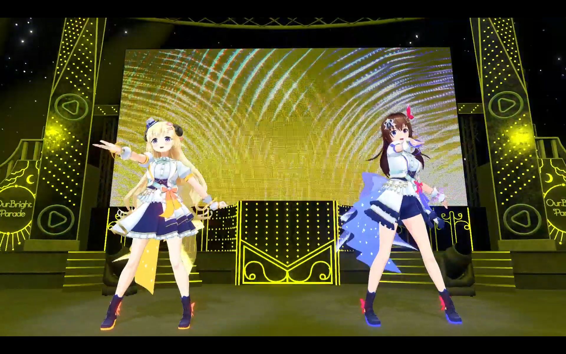 最後は、今回のhololive 4th fes. Our Bright Paradeのために書き起こされた新曲「Our Bright Parade」を、DAY1に参加した全員で合唱した。OPと同じく2つのグループに分かれ上下2段で登場である。最後の締めということもあって、ライブTシャツを着た衣装に変わっているのも芸が細かい。